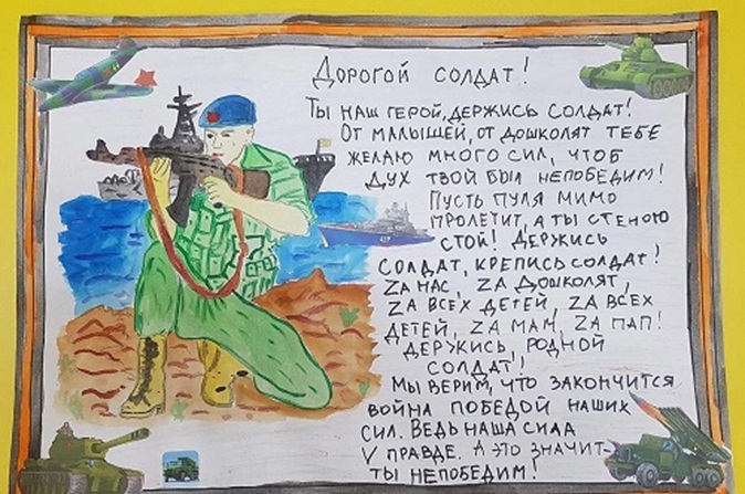 Также открытку можно вложить в письмо и отправить поздравление нашим солдатам, сражающимся на поле боя.