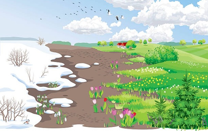 Вот и наступила долгожданная весна. Расцветают подснежники, набухают почки на деревьях и появляются первые зеленые листочки. Домой возвращаются птицы из дальних стран. Из зимней спячки начинают выходить медведи, ежи, лягушки, а также многие мелкие грызуны.