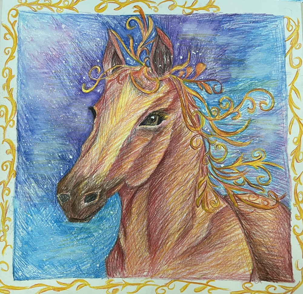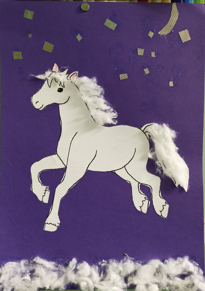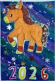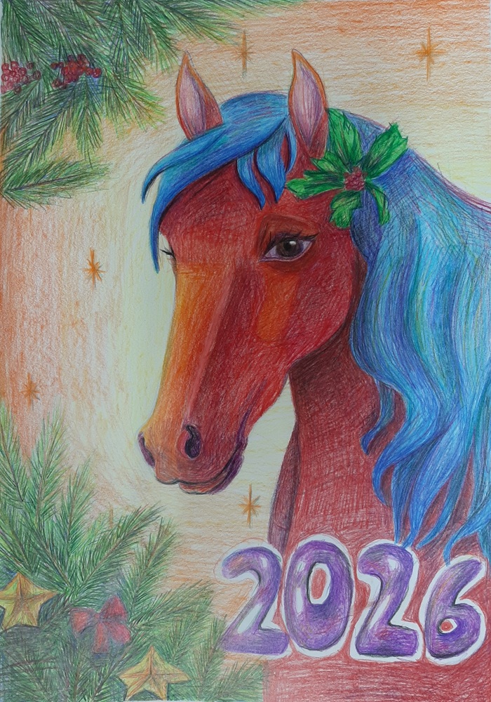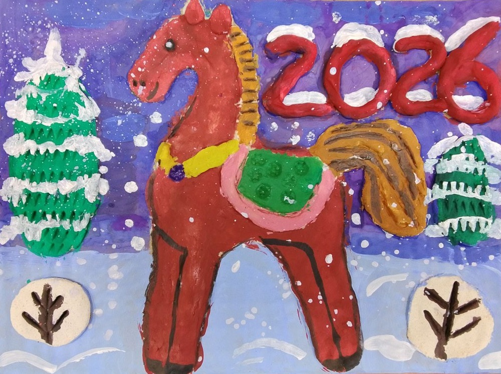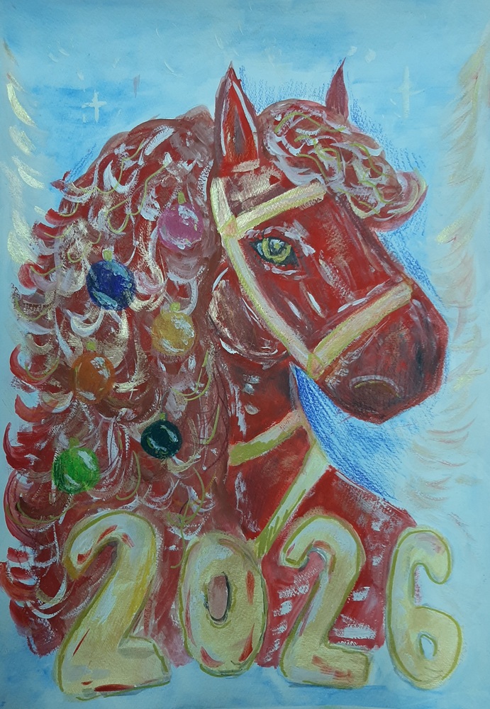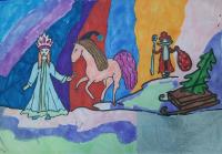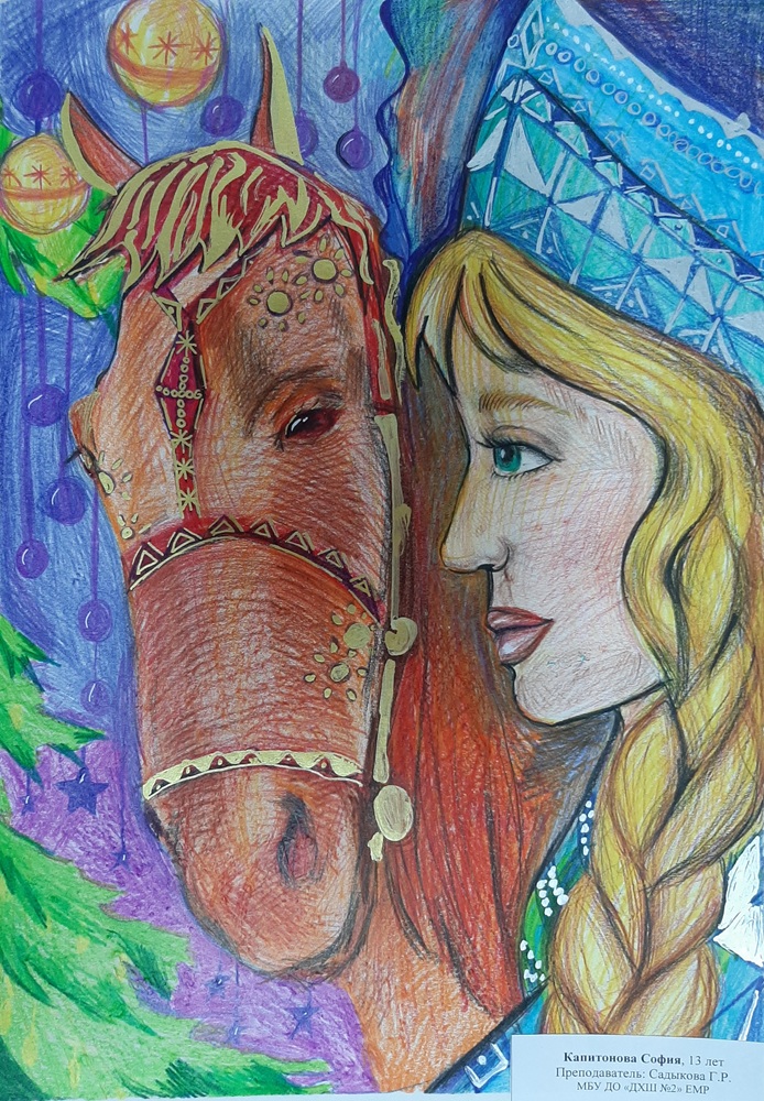 Лаврентьев Роман, 11 лет, МБОУ Гимназия «Планета Детства», город Рубцовск, Алтайский край, учитель изобразительного искусства: Колычева Анжелика Олеговна Под Новый год гордо ходит по заснеженным полям лошадь с прекрасным именем Огненное чудо. Ребята сразу узнают место, где прошлось это удивительное животное. Снег там становится фиолетовым, а между сугробов лежат подарки для мальчиков и девочек!