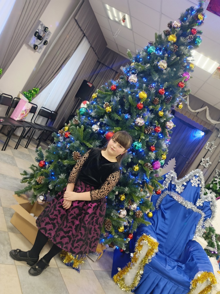 Ломакина София, 8 лет, МОУ СОШ № 51, МБОУ ДО Кванториум, город Комсомольск-на-Амуре, Хабаровский край, учитель начальных классов, педагог дополнительного образования: Шумилина Лариса Борисовна, Чурилова Валентина Сергеевна Фотография выполнена у ёлки с новогодней игрушкой. На фотографии автор - Ломакина София