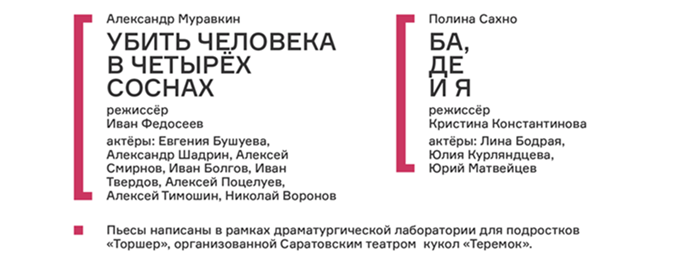 В этот раз молодые режиссеры представят две пьесы, созданные в рамках драматургической лаборатории для подростков «Торшер», организованной Саратовским театром кукол «Теремок».