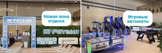 «Игротека» позиционируется как часть семейной инфраструктуры: зона рассчитана на совместный отдых и досуг детей, в то время как взрослые могут воспользоваться другими сервисами комплекса. Пространство оборудовано игровыми приставками, мультимедийными экранами, а также зонами активных развлечений, включая аэрохоккей, настольный футбол, баскетбольные аттракционы и игровые автоматы.