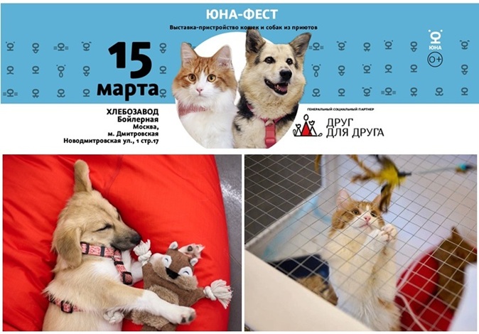 15 марта на территории современного городского пространства Хлебозавод состоится «Юна‑Фест» — выставка‑пристройство кошек и собак из приюта. Это замечательная возможность наконец-то встретить питомца своей мечты! Мероприятие организовано при поддержке генерального социального партнера — проекта «Друг для Друга».
